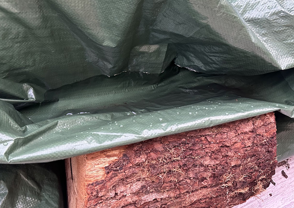 Si des flaques d’eau sont visibles sous la bâche, y verser un larvicide biologique à base de Bti en granulés ou liquide.